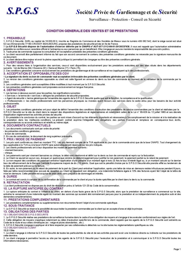 Condition Générale des Ventes